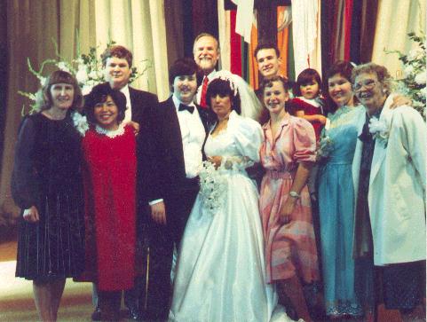 Ed and Carmen's Wedding - Susan, Becky, Laura, Carmen, Ed, Jim, Dave and Bob - 1985 Berkeley CA