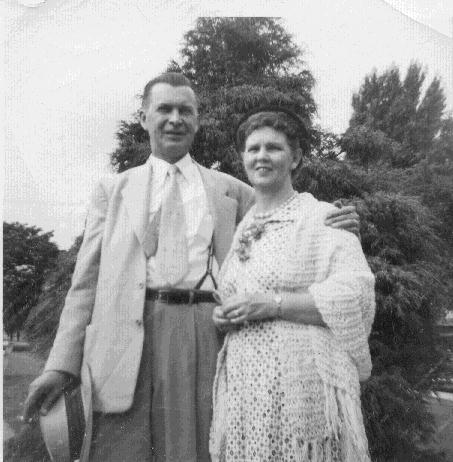 Charles McGriff and Mary Jean Bear in flower garden(color)